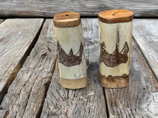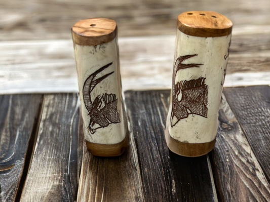 African Crafted Wood & Kudu Bone Salt & Pepper Shakers